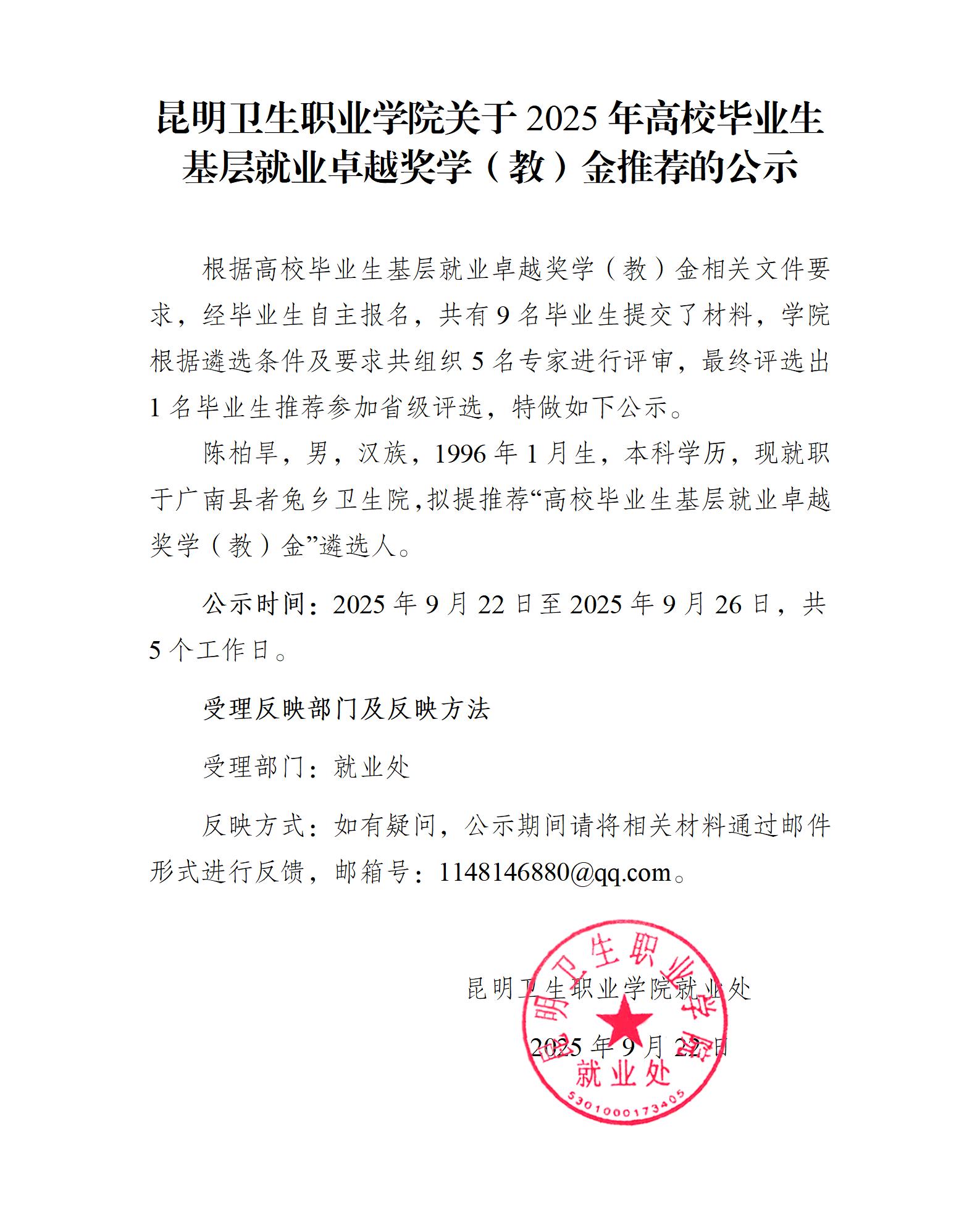 威廉希尔williamhill关于2025年高校毕业生基层就业卓越奖学(教)金推荐的公示