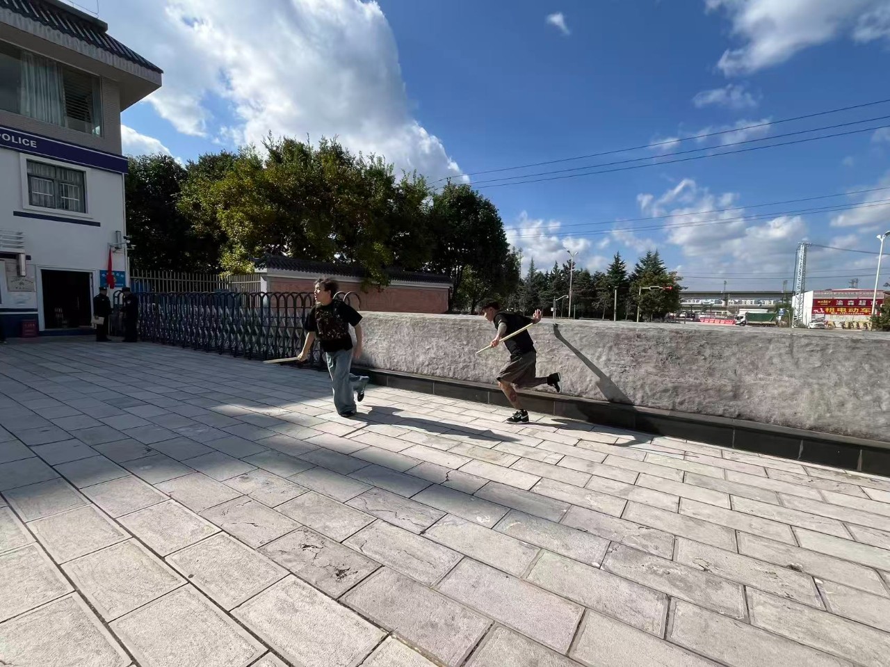 下午3时,演练以模拟5名“歹徒”持械强行闯入校园开始。学院应急处突领导小组立即启动应急预案,按照“1分钟响应、3分钟到场处置”的要求,迅速调集各应急力量。应急处置组率先抵达,在一键报警的同时,运用防暴盾牌和钢叉,采取正面牵制、侧翼包抄的战术,将“歹徒”合围控制在门岗内侧,有效防止其流窜伤人;与此同时,应急疏散组与现场警戒组快速引导、疏散现场师生至安全区域并设立警戒线;医疗救护组随即到位,做好应急救援准备;舆情控制组则全程关注动态,进行教育引导。整个处置过程紧密配合、高效有序,至15时20分,在昆阳派出所警力赶到后,所有“歹徒”被成功控制并带离。