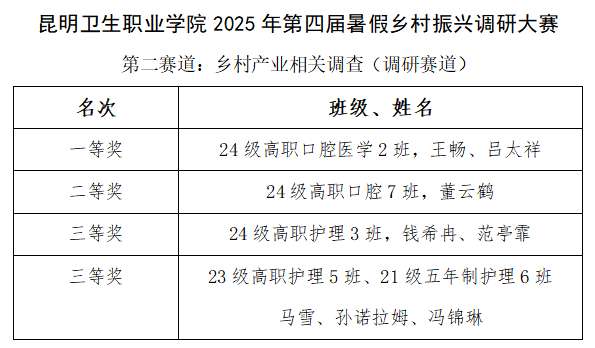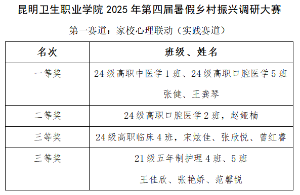 我校大学生工作部成功举办第四届假期乡村振兴调研大赛,本次大赛同期设立“家校心理联动”(实践赛道)和“乡村产业相关调查”(调研赛道)双赛道,共收到来自护理、中医、口腔、临床等多个专业的优秀调研报告,近日获奖名单正式公布。大赛以“家校同心·健康同行”为主题,各组同学利用暑期深入云南省宣威、会泽、晋宁、宜良、元阳等地的农村、医院、产业园区,通过问卷、访谈、实地观察等方式,认真调查,展现了医学生扎根基层、服务社会的专业担当。