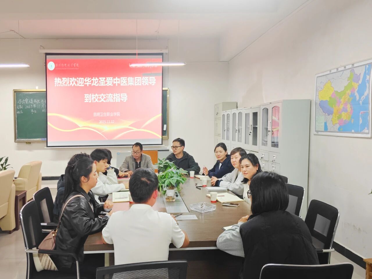 2025年11月12日,华龙圣爱中医集团人力资源副总监张馨月一行莅临我校,与中医学院、护理学院、中药学院就校企协同、产教融合等项目开展合作洽谈。洽谈聚焦学生实习见习、“双师型”教师队伍建设、现代学徒制推行、订单班培养及产业学院建设等核心议题,双方围绕人才培养定位、教学实践衔接、师...