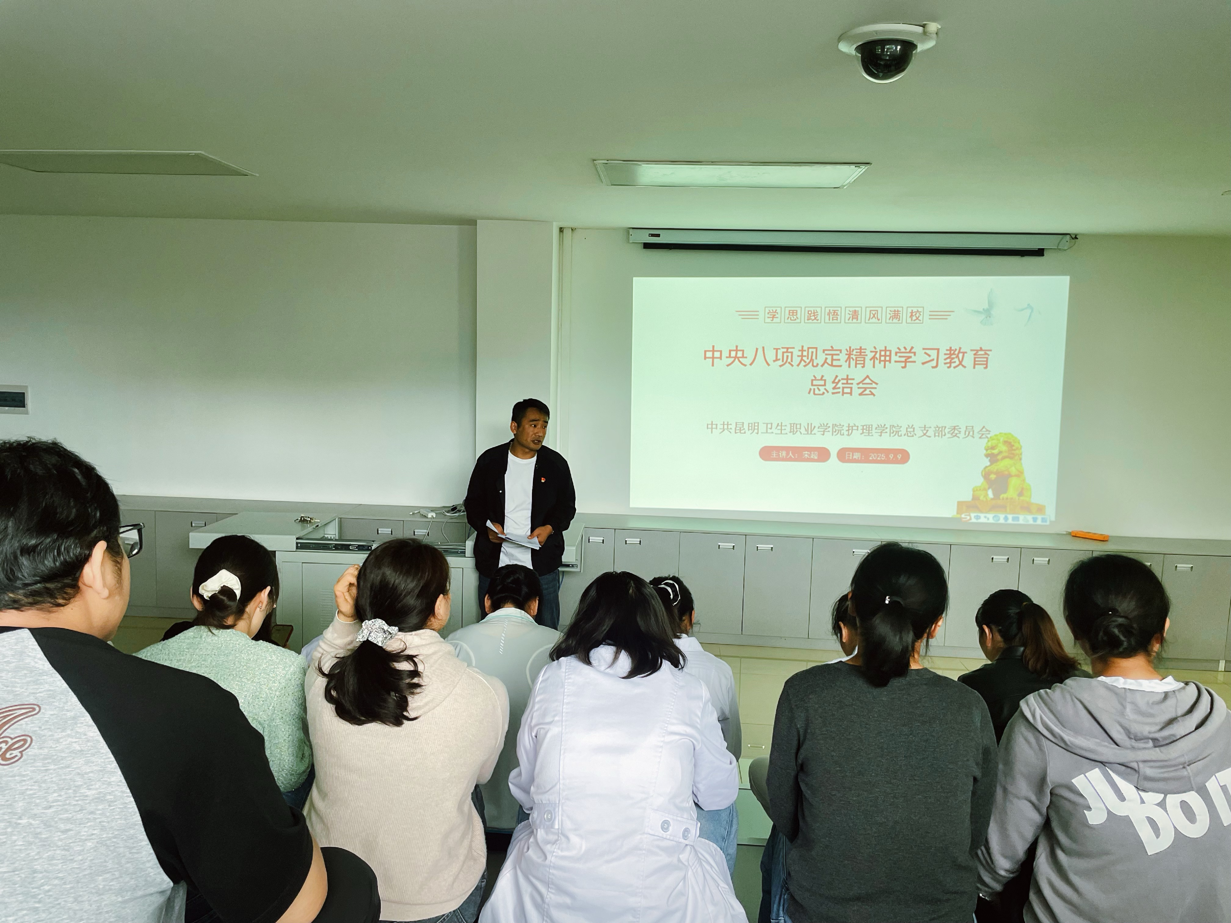 9月9日,护理学院党总支组织召开深入贯彻中央八项规定精神学习教育工作总结大会,全面回顾学院在落实中央八项规定精神、推进党风廉政建设方面的工作成效,并对下一阶段工作进行部署。全体党员参加了会议。