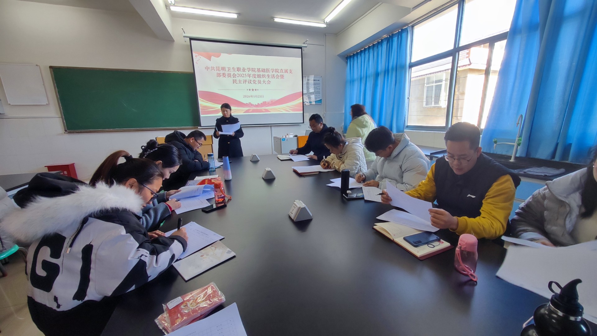最后,支部书记彭莉同志在总结讲话中指出,本次组织生活会和民主评议党员工作,是支部锤炼工作作风、凝聚干事合力的关键契机。全体党员要以此次会议为新起点,切实把整改成效转化为履职尽责、潜心育人的实际行动,推动党建工作与教育教学、科研等中心工作深度融合、同频共振。大家一致表示,将严格恪守中央八项规定精神,以更务实的作风、更精准的举措、更扎实的行动,在教育教学、学科建设、科研创新等工作中主动担当、争当先锋,充分发挥党员先锋模范作用,切实把党建优势转化为学院发展优势,为基础医学院高质量发展筑牢党建根基,为学院“十五五”发展目标实现贡献党员力量。