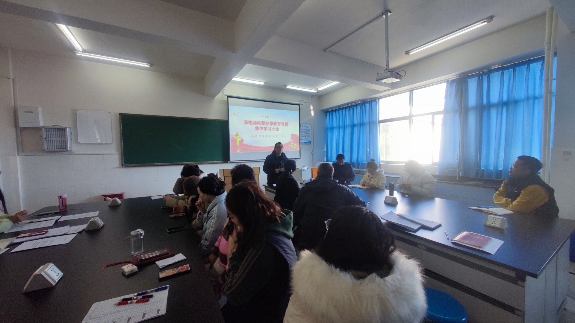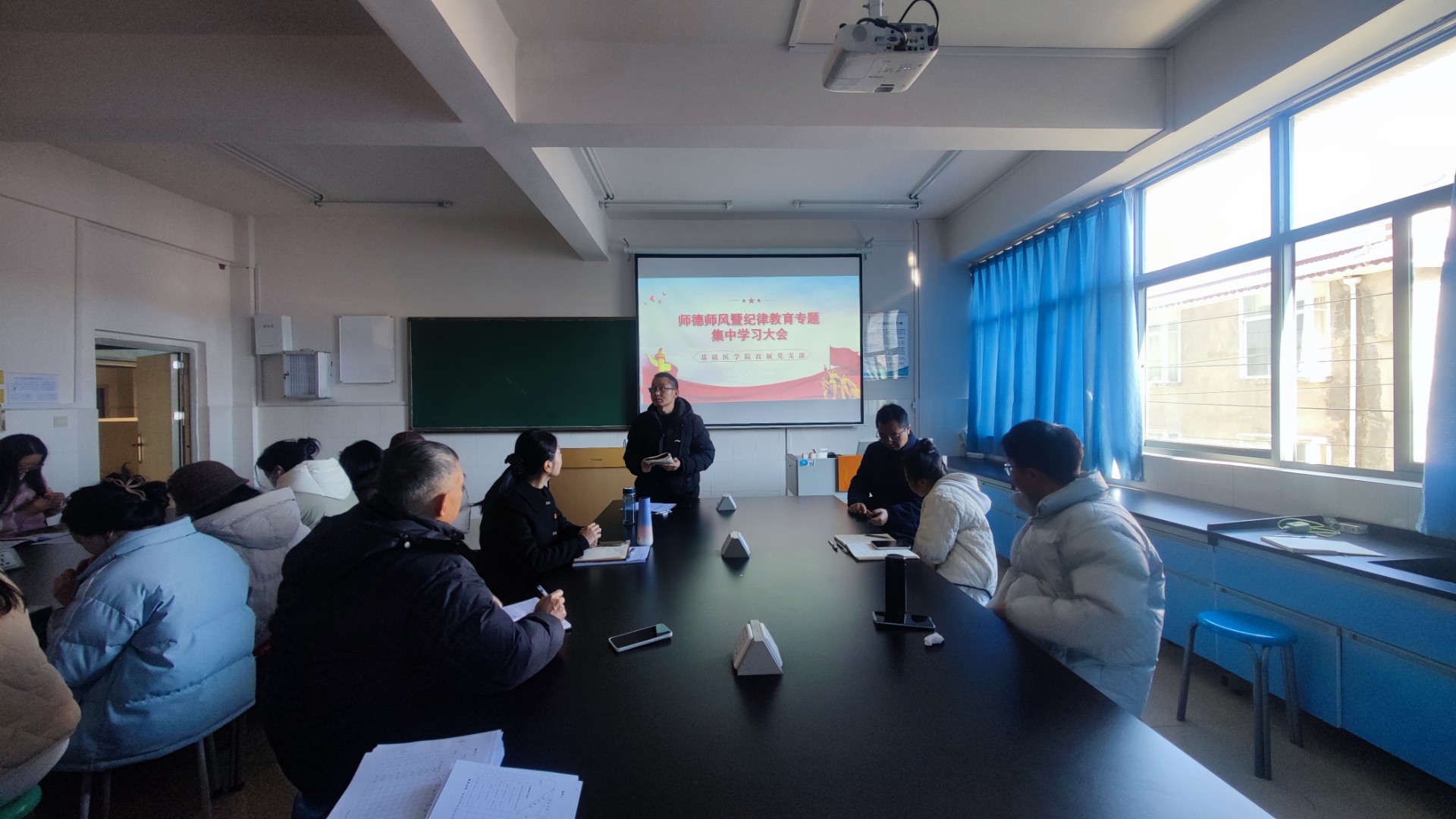 为深入学习贯彻党的二十届四中全会精神,扎实推进全面从严治党向基层延伸,筑牢党员干部纪律规矩意识,2月26日下午,基础医学院直属党支部组织全体党员、预备党员在基础医学院307会议室开展专项纪律教育主题党日活动,以严明的纪律作风为学院高质量发展保驾护航。活动由党支部书记彭莉同志主持。