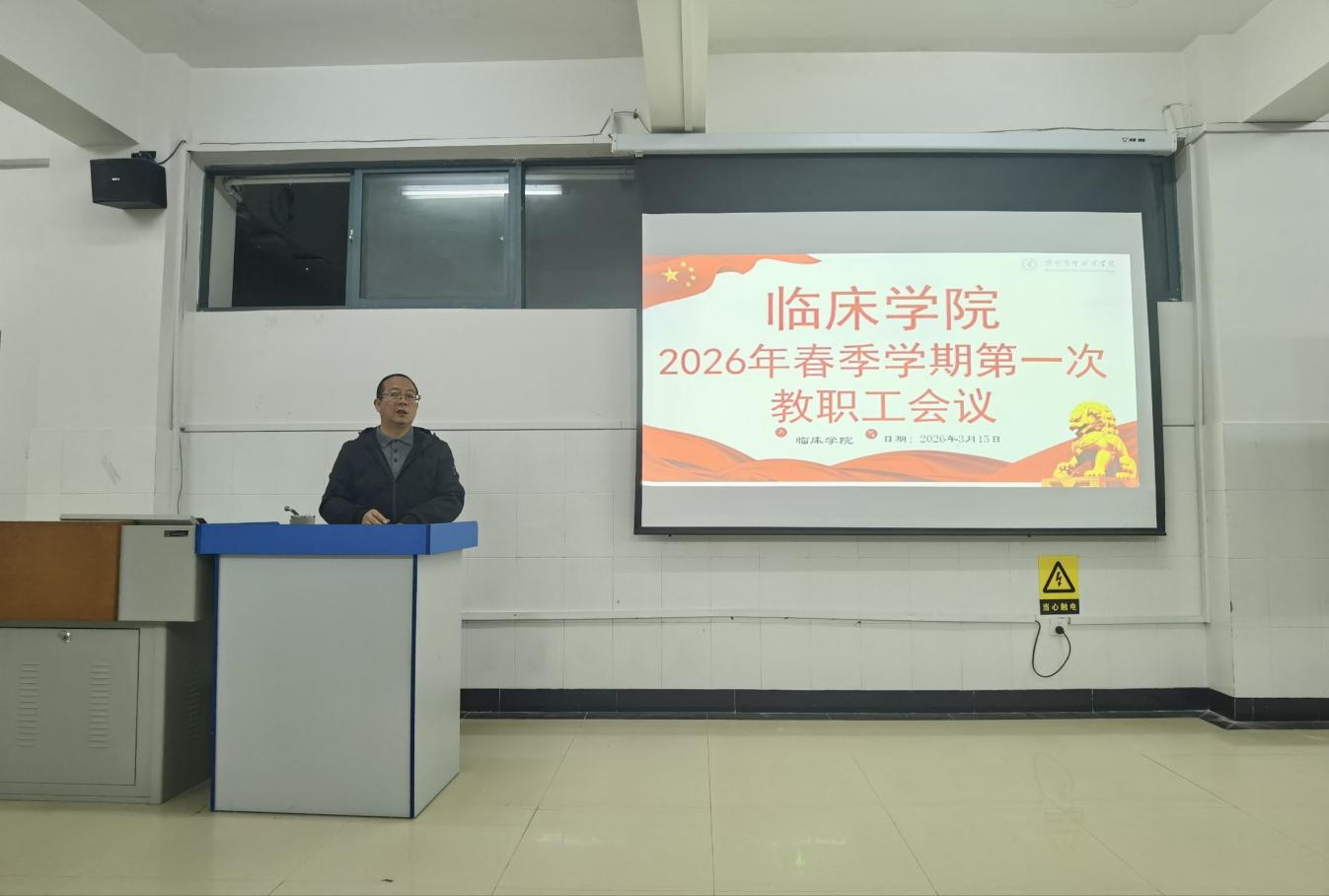 为进一步明确办学方向,深化教育教学改革,全面提升人才培养质量与招生就业工作水平,临床学院于2026年3月15日晚,在临床实训楼408室召开专题工作会议。会议围绕教育理念与责任、教学质量改进、招生策略优化、就业工作部署及师德师风建设等核心议题展开深入研讨。临床学院全体教职工参会。