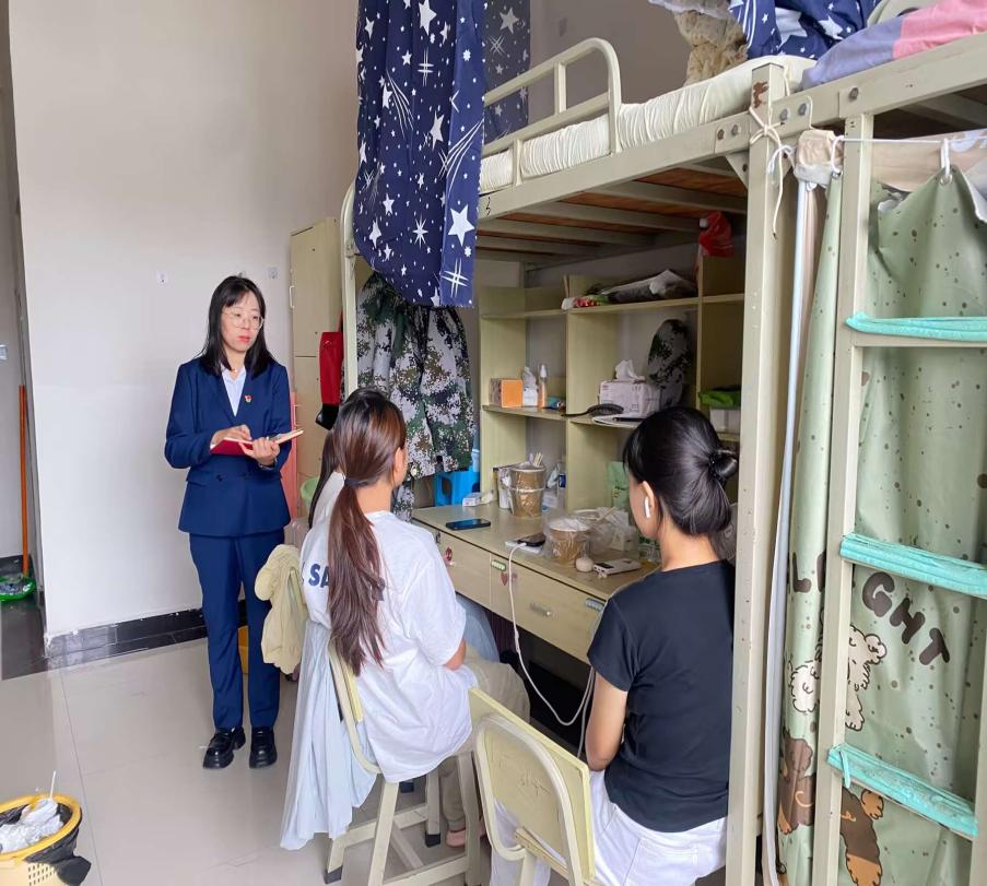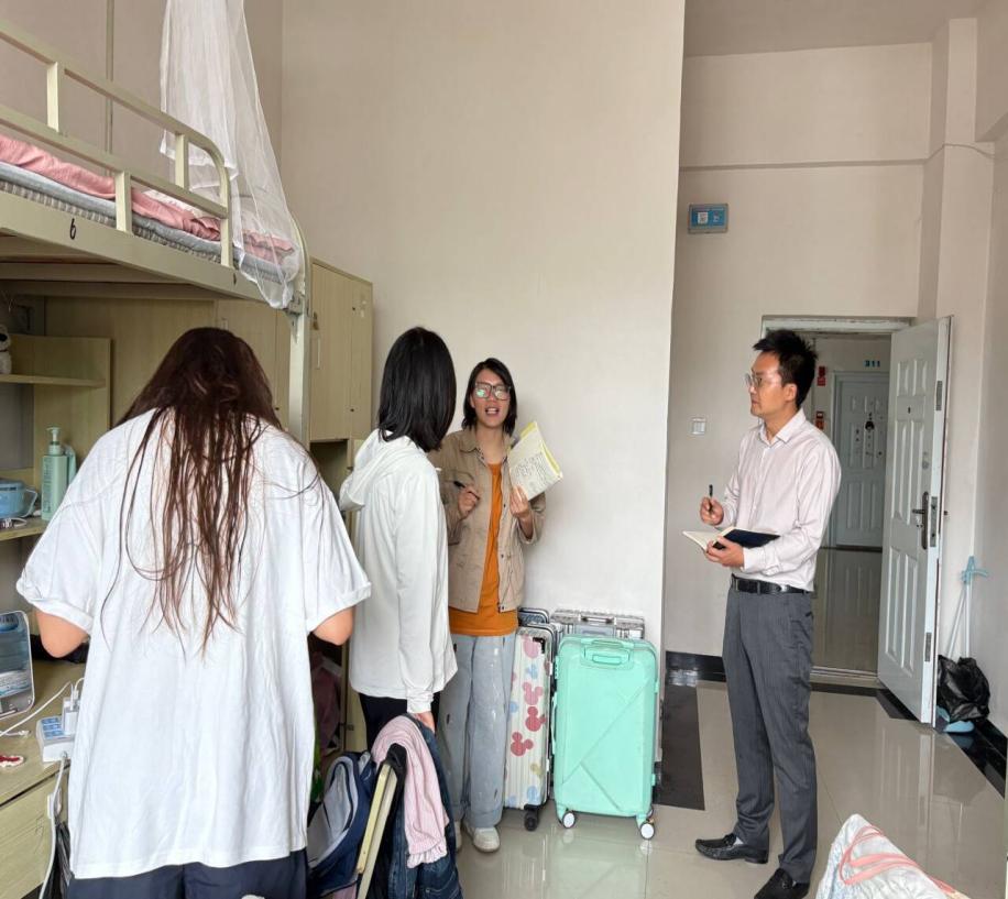 活动前,党支部精心部署,明确走访分工与重点,聚焦新生“生活适应、学业规划、思想动态”三大核心需求。 走访过程中,教师们与新生亲切交谈,细致查看宿舍居住情况,关切询问新生是否适应集体生活、饮食作息是否习惯,未来如何规划学业系列问题,教师们逐一倾听、耐心解答;针对部分新生初入校园的陌生感,教师们结合自身经历分享适应方法,鼓励新生多参与集体活动,尽快融入大学集体。此外,教师们还特别强调了宿舍用电规范、消防安全及防范诈骗等注意事项,提醒新生共同维护安全整洁的居住空间,筑牢校园安全防线。