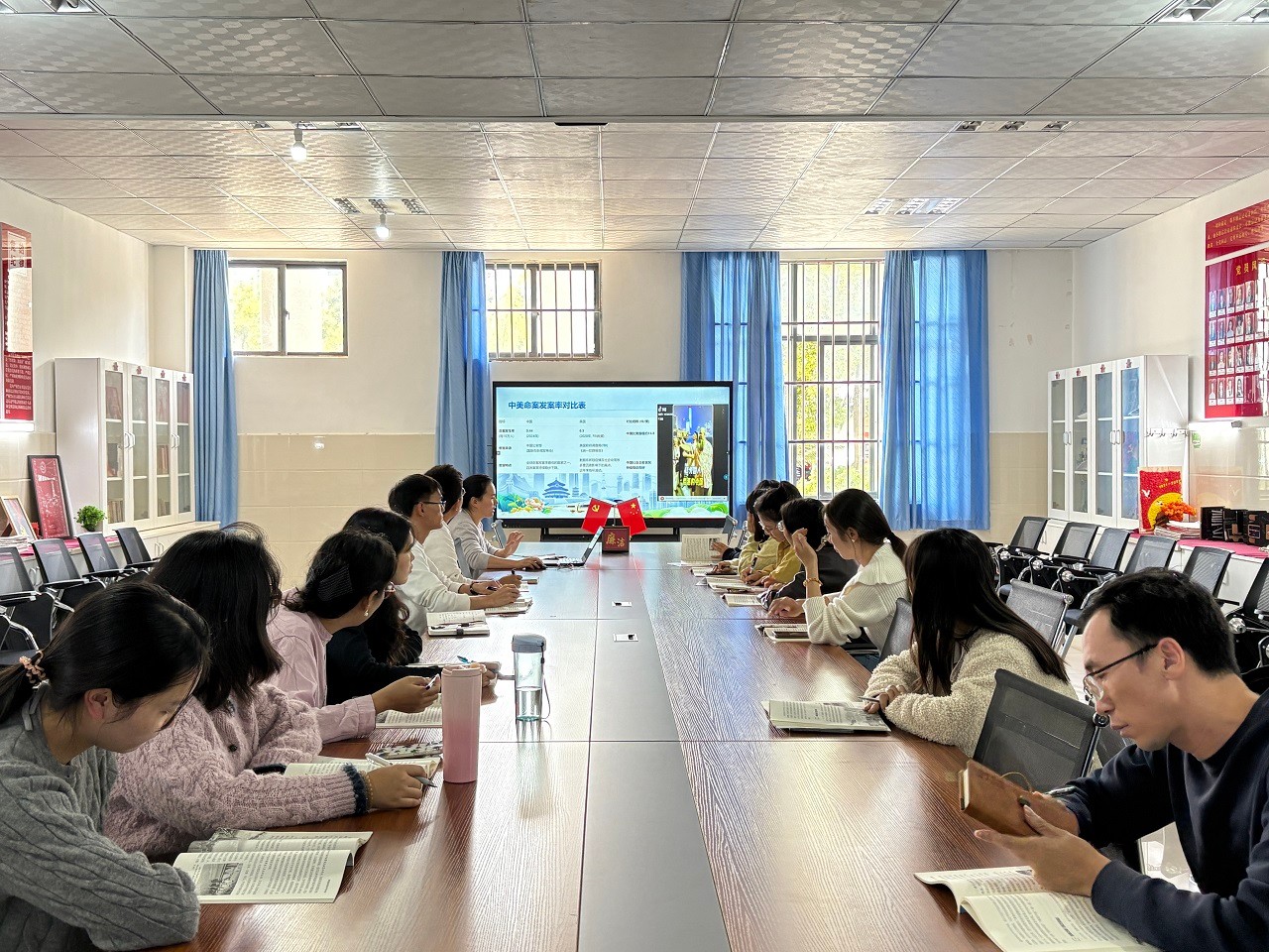 为深入学习贯彻习近平新时代中国特色社会主义思想,贯彻习近平总书记对学校思政课建设作出的重要指示精神,切实提升《形势与政策》课程的教学针对性、时效性和思想性。9月25日,马克思主义学院组织开展2025学年秋季学期“形势与政策”课第三次集体备课会,全体承担“形势与政策”课教学任务的老师参加此次备课会。