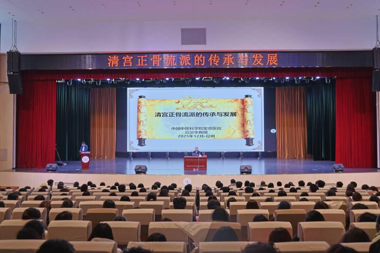 2025年12月19日上午,一场主题为 “清宫正骨流派的传承与发展”的专题讲座在我校顺利举办。讲座特邀中国中医科学院望京医院高景华教授担任主讲人,全校600余名师生齐聚现场。高教授围绕清宫正骨的历史渊源、技艺精髓与传承创新展开分享,内容兼具专业性与实用性,现场互动频繁、讨论热烈。