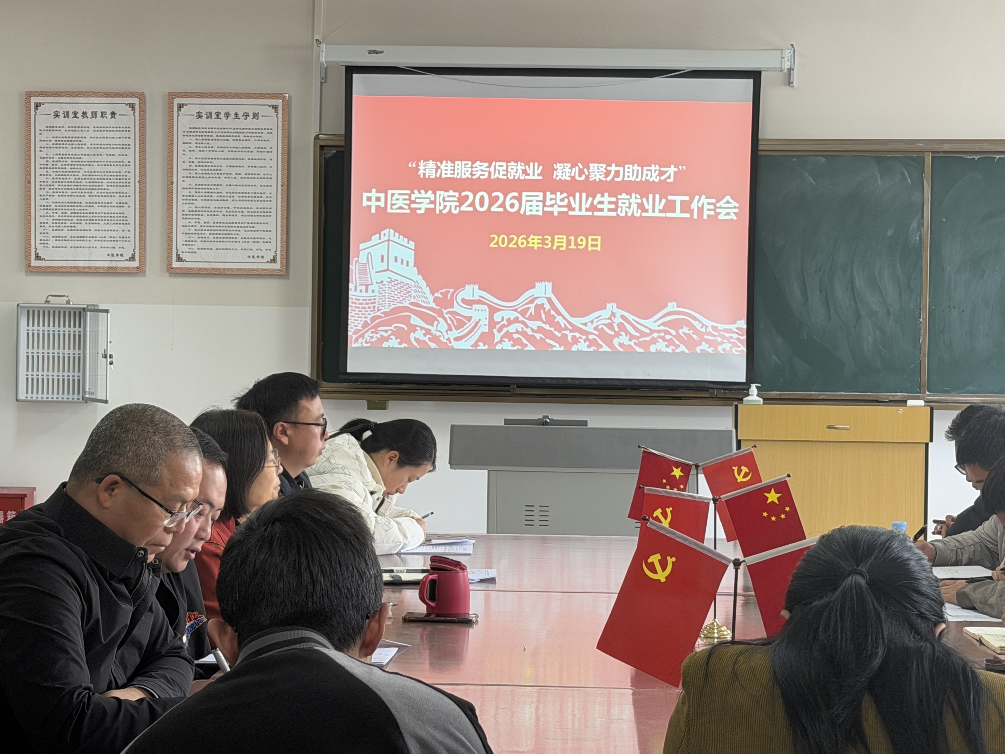 为深入贯彻落实国家及学校关于高校毕业生就业工作的决策部署,抢抓春季就业攻坚关键期,3月19日,中医学院召开2026届毕业生就业工作专题会议。学院全体教职工参会,会议由中医学院直属党支部书记易斯坐主持。